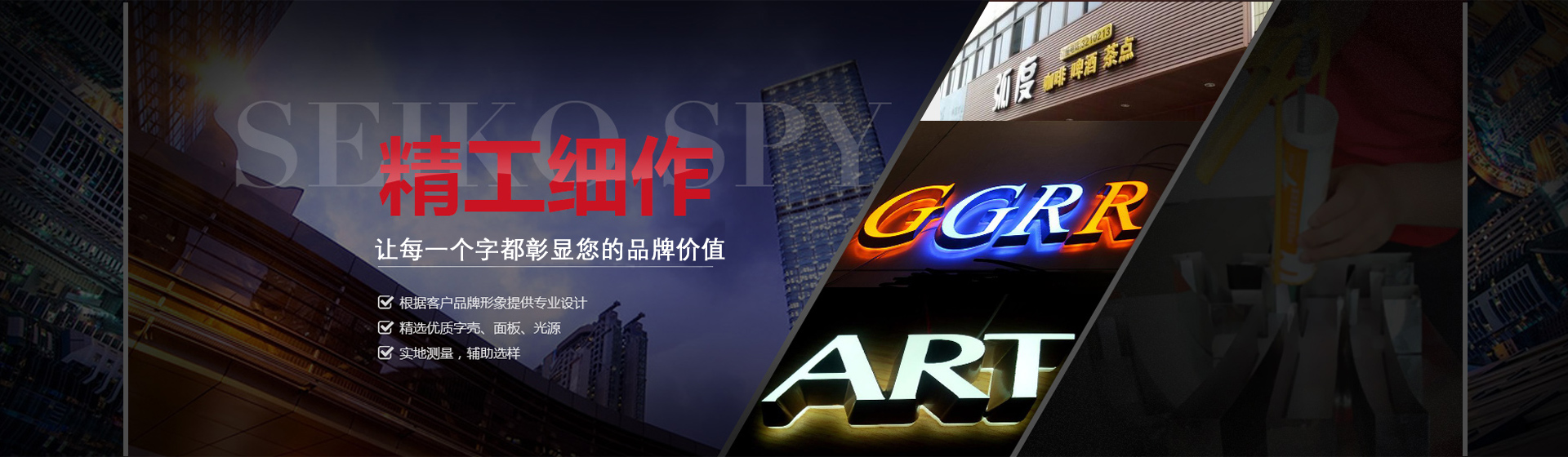 主要经营:发光字制作,各类金属字加工,雕刻加工部专业灯箱制作部,旗帜制作部,彩钢扣板部,广告标识部,电子显示屏部,铝型材发光字部,UV平板打印,UV卷材打印,喷绘,写真,广告板材,成型灯箱,等多个广告加工定制平台,以优惠的价格,便捷的合作方式及诚信立业的理念服务于广大客户.